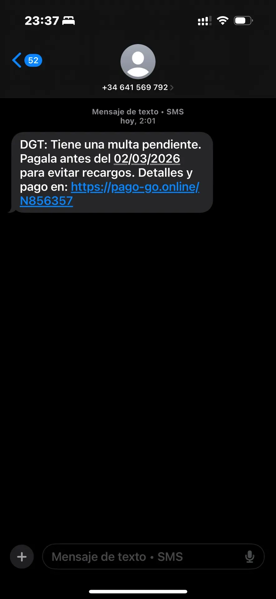 SMS estafa de DGT del [REDACTED]