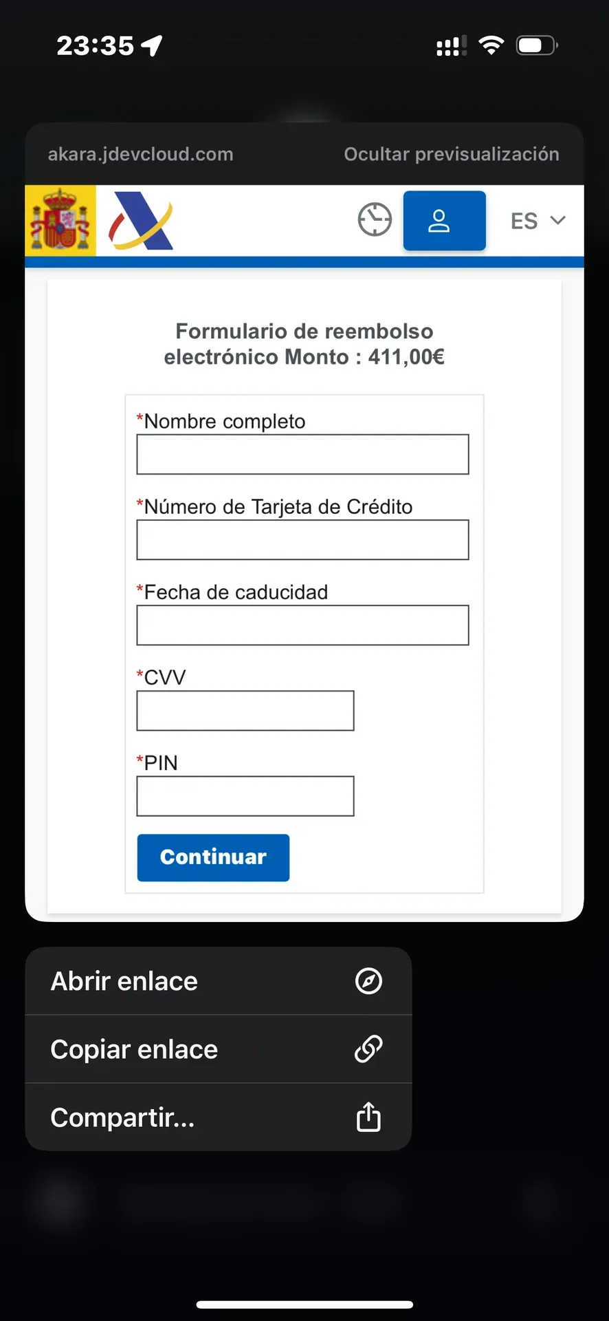 SMS phishing de agencia tributaria viene del [REDACTED] mucho cuidado